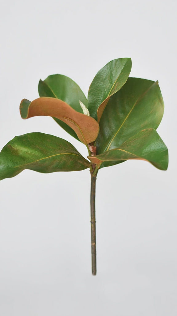 The absolutely most realistic faux magnolia stems you've ever seen! The stem and 6 leaves are wired so that you can manipulate them into your desired shape. We use these year-round because they are a beautiful texture in arrangements!  They are not just for Christmas or Fall!