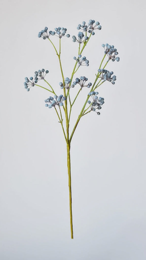 This faux blue berry spray works beautifully on its own as a statement stem or mixed into larger floral compositions, complementing greenery, floral bunches, and seasonal décor styles for year-round beauty.